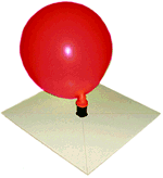 This hovercraft is capable of almost frictionless flight across a smooth surface. You will need an over-size balloon (12-16 inches), a 12" x 12" piece of foam core, a plastic film container, and some bathroom caulk. Cut the foam core into a square about one-foot on each side and mark the diagonals to find the center. Place the film container over the center and trace a circle around the bottom of the container. Use an Xacto-knife to carefully cut a hole that exactly fits the film container.