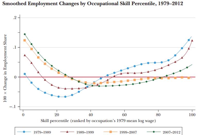 If you look at a graph with the income a specific job provides arranged from left to right, with minimum wage on the far left, and CEOs on the right, and setup the vertical axis to show jobs lost or gained, what you will find is that while we have actually gained jobs over all, those gains have all been on the far left (minimum wage jobs, not worth automating) and on the right (jobs the require creativity, education, deep understanding, etc... which can not yet be automated). In the center, jobs where humans do hard, repetitive, mechanical work that does not require great education, are actually being lost.